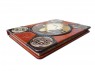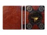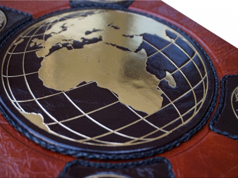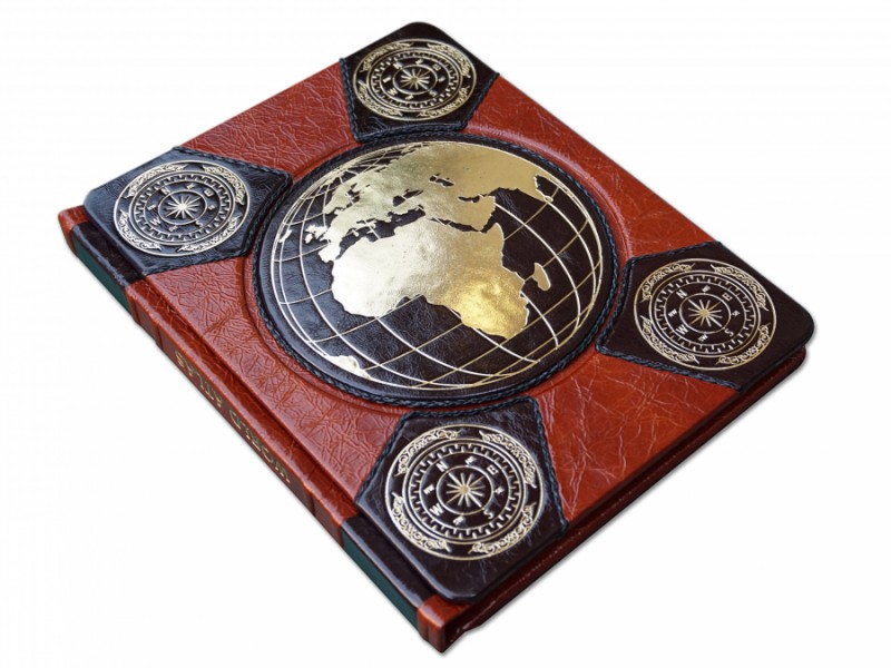 Французька складова палітурка ручної роботи виготовлена з комбінації натуральної шкіри (шкіра «Robbat cognac», шкіра «Robbat nero» виробництва італійської фабрики «Carisma»). Дворівнева обкладинка книги оформлена рельєфним золотим тисненням з використанням фольги «Luxor 240», декорована шкіряним шпагатом. Обріз блоку вручну полірований та позолочений сусальним золотом.