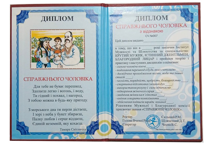 Відгуки до Диплом Справжнього чоловіка