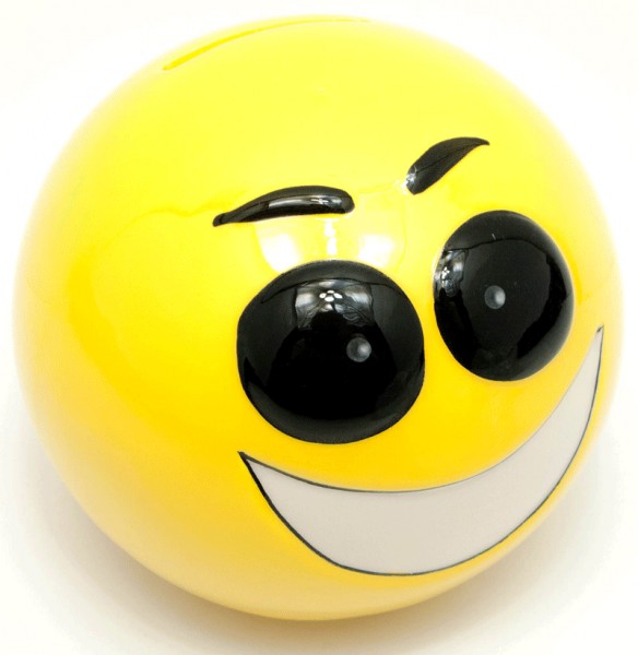 Віддайте гроші з посмішкою цій милій скарбничці зі смайлом.
