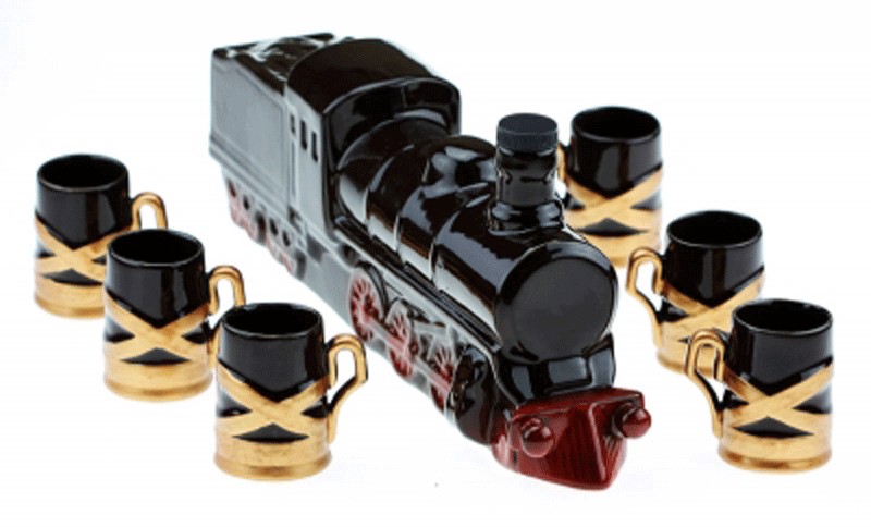 Тематичний набір пов'язаний із залізничною професією, який явно не залишить Вас байдужим. Великий паровоз є графином для Ваших напоїв, який виготовлений з кераміки та упакований у поліетиленову плівку, що складався з 7 предметів.