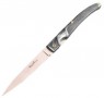 Складаний ніж Muela Наваха виглядає переконливо і одночасно оригінально. Такий предмет вибирають як подарунок, для повсякденного носіння або для колекції. Клинок виготовлений із нержавіючої сталі 440С, твердістю 56-58 HrC. Вона має стійкість до корозійних процесів і добре переносить навантаження. Це забезпечує триваліший термін служби ножа. Про те, що це ножа на кожен день, говорить і серрейторне заточування частини леза. Такий ніж підійде для вирішення численної кількості завдань як вдома, так і в умовах міських джунглів. Довжини клинка в 10 см для цього цілком достатньо