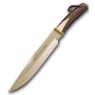 Ніж "Гредос" виготовлений фірмою "Manufacturas Muela, SA" (Іспанія). Рукоятка з натурального рогу, чохол шкіряний. Клинок виготовлений із нержавіючої сталі "Inox-1-42-MOVA".