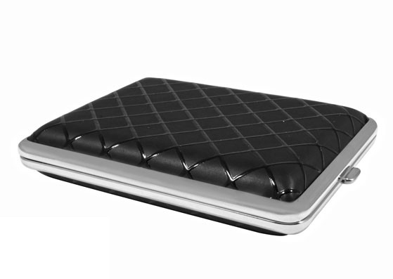 Портсигар на 20 сигарет, еко-шкіра чорна, гравіювання ромби