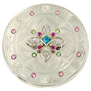 Дзеркало косметичне "Jardin D`ete". Оригінальне кругле дзеркальце із високоякісної сталі. Лицьова частина прикрашена стразами та об'ємними візерунками. Незвичайна особливість – змінна верхня панель, яку ви можете змінювати в залежності від смаку та настрою!