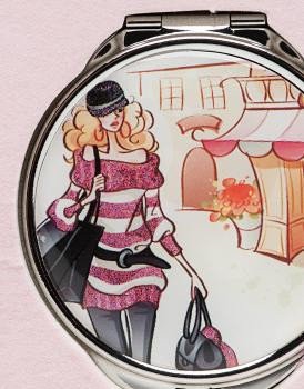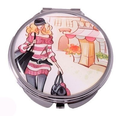 Стильне косметичне дзеркальце "Jardin D`ete". Металевий корпус на лицьовій стороні нанесення із зображенням красива дівчина на прогулянці. Висока якість та оригінальний дизайн зробить цей виріб незамінним атрибутом вашої сумочки!