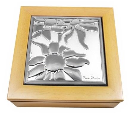 На «щиті» цієї скриньки квітка маргаритки виглядає дуже доречною - кожна жінка, безсумнівно, віддасть цьому витонченому диву своє серце. І не тільки серце, адже скринька здатна стати найкращою оправою для найулюбленіших ювелірних виробів. До того ж форма скриньки органічно поєднуватиметься з вишуканим інтер'єром будь-якого жіночого будуару.