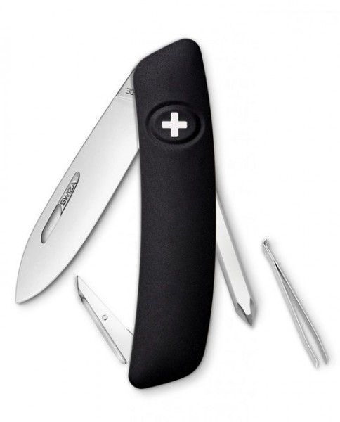 Новий швейцарський ніж D02 від Swiza має довге надміцне лезо завдовжки 75 мм, виготовлене з нержавіючої сталі 440 та загартоване до 57HRC. Дана марка сталі має гарні експлуатаційні характеристики: вона має високу стійкість до температурних перепадів і вологості, практично не затуплюється, і маючи твердість на рівні 57HRC не піддається впливу харчових кислот.