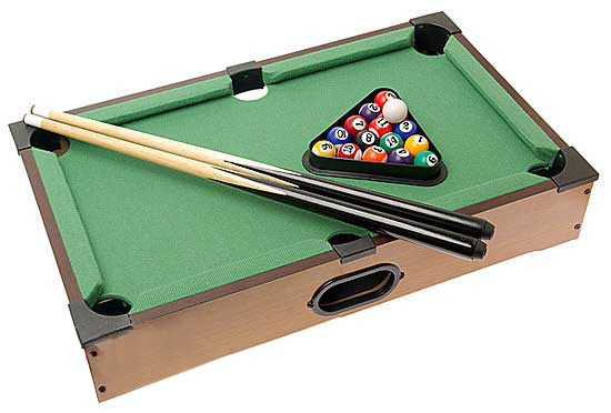 Настільний більярд може стати для його власника гарним подарунком, особливо для тих хто любить цю чудову гру, з якою не дасть нудьгувати. Поле виготовлене з дерева, обтягнуте велюром. Шкіряна поверхня кінчика кия перешкоджає ковзанню при ударі, а також у комплекті йде стандартна крейда для кия.