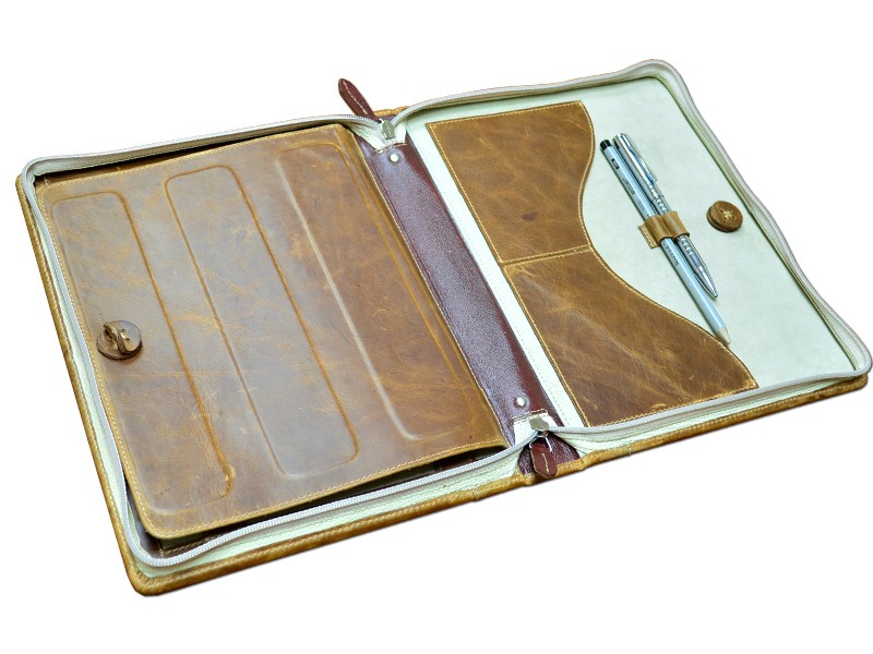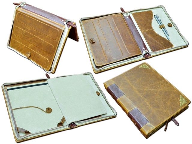 Абсолютно новий продукт на ринку України, якому немає аналога. Папка для iPad. З функцією підставки, що дуже зручно, коли ви знаходитесь у громадському місці. Папка дуже міцна виготовлена з натуральної італійської шкіри вищої якості. Усередині обшита спеціальним матеріалом, який не дряпатиме ваш iPad. Так само в папці можна розмістити щоденник або щось на зразок блокнота.