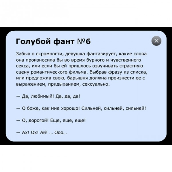 Гра дуже проста і полягає у виконанні завдань-фантів, що виконуються по черзі. Стаючи по ходу гри все більш «нескромними». ці завдання поступово провокують вас на велику відвертість, непомітно зближуючи.