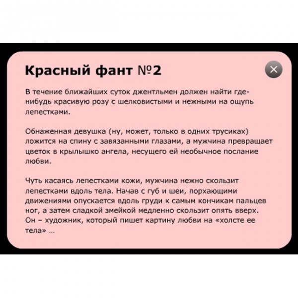 По суті, «фанти» - це зручна, проста та ефективна технологія, що дозволяє зняти проблеми особистісного та психологічного плану у спілкуванні з протилежною статтю: розкріпачитися. зняти затисненість, почуватися легко, весело і невимушено. Граючи, ви не втрачатимете час, а швидко відчуєте. "клеїться" у вас роман чи ні. Однак, у будь-якому випадку, обидва дуже цікаво проведете час удвох.
