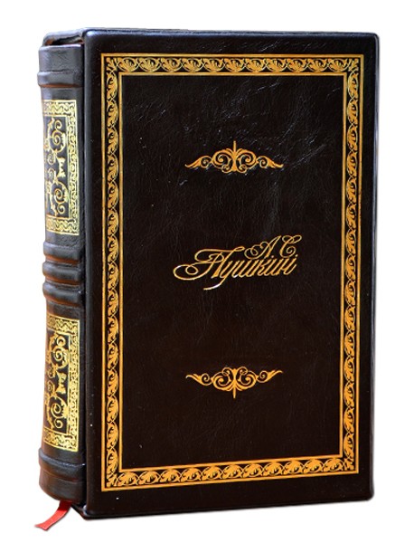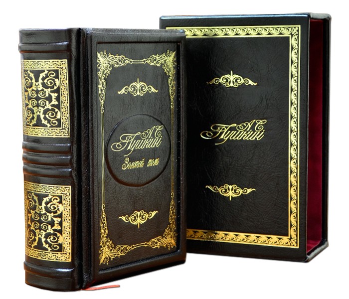Розкішне, стильно оформлене подарункове видання. Витончена тканинна обкладинка книги виконана з рельєфним тисненням під "золото" та тристороннім золотим обрізом. Видання забезпечене шовковим лясом. В даний час видання творів Пушкіна включені всі твори великого поета, все закінчене і цілісне, до дрібних віршів та уривків включно.