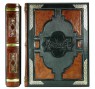 Переплёт ручной работы, выполненный из комбинации натуральных кож (кожа чёрная, овчина, сорта «Moto Alfredo» Италия; кожа чёрная телячья, сорта Larissa Chesnut, Италия; кожа козья «коньяк», Италия). Обложка книги оформлена узорами ручной продавки, а также тиснением золотой фольгой Luxor 302. Тираж 12 экземпляров.