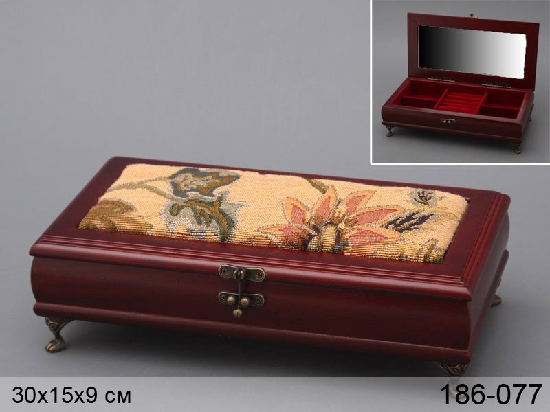 Красива скринька на ніжках, сама по собі довга, що дає можливість вмістити велику за розміром біжутерію.