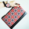 Клатч "Вишиванка червона" виготовлений з міцної структурної тканини зі вставкою шкірозамінника під колір принта.