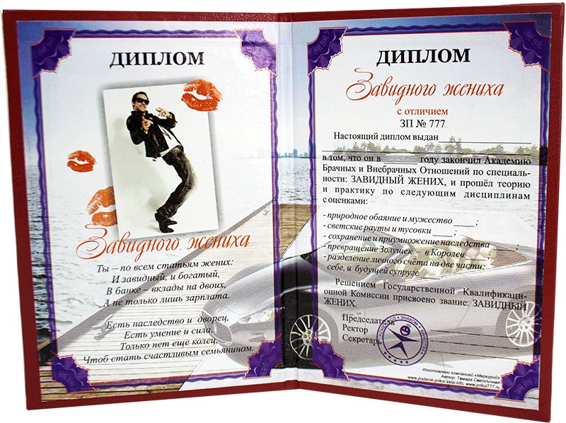 Диплом " Завидного жениха "