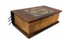 Французька складова палітурка ручної роботи виконана з комбінації натуральної шкіри (шкіра «Robbat blue», шкіра «Crocozombo» виробництва італійської шкіряної фабрики «Benericetti»). Обкладинка книги дворівнева, оформлена рельєфним золотим тисненням (використано фольгу «Luxor 240»). Обріз книги оформлений в унікальній техніці «Хамелеон» із використанням сусального золота.