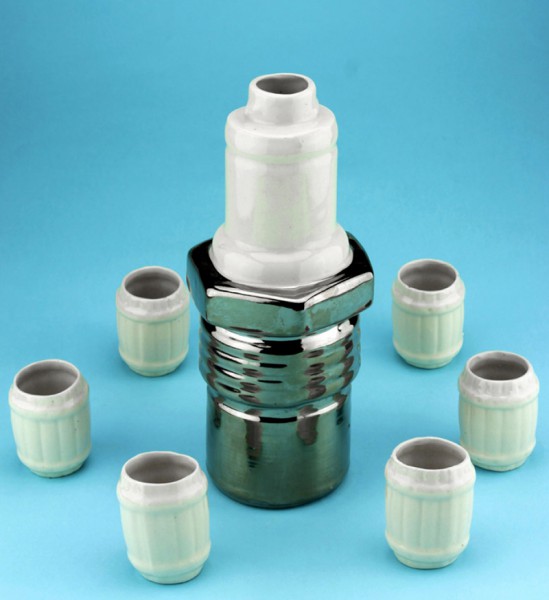 Сама свічка це графин для Ваших напоїв, а також у набір входить 6 стопок і упакований у поліетиленовий пакет. Виготовлений із кераміки.
