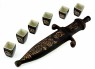 Просто чудовий набір, зроблений дуже технічно і красиво, буде відмінним сувенірним подарунком бізнес партнерам або для чоловіків зі східних регіонів. Сам кинжал є графином для напоїв і в набір входить 6 стопок, який укомплектований в поліетиленовий пакет, весь комплект виготовлений з кераміки.