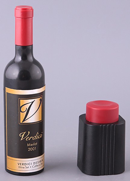 Цікавий і водночас компактний та зручний набір, який ідеально підходить на подарунок. У комплект входить 2 предмети – це оригінальний штопор у вигляді пляшки і пробка так само не менш дивовижна.