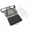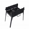 Розкладний мангал на шість шампурів Prometeo Q 6 VBR додатково укомплектований гратами для гриля з харчової нержавіючої сталі. Для продовження терміну служби було застосовано вороніння, мангал дуже зручно транспортувати у спеціальній сумці-чохлі.