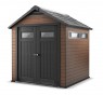 Сарай Fusion 757 – виготовлений з використанням найновіших технологій, які полягають у використанні композиту деревини з пластиком – є функціональним доповненням до архітектури саду. Безперечною перевагою даного виробу є продумана конструкція, яка полягає у простому монтажі панелей за системою "interlock". Додаткова перевага - це можливість свердління отворів у стінах, і встановлення полиць, гачків та інших елементів з метою оптимальної організації корисного простору. Подвійні двері підвищують комфорт експлуатації, а внутрішня площа дозволяє зберігати габаритні садові інструменти, меблі та інші аксесуари для відпочинку. Поверхня, що імітує натуральну деревину, наголошує на природному характері виробу, підходить до навколишнього середовища. Стійкий до несприятливих погодних умов.
