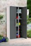 Сучасний дизайн - це лише одна з багатьох переваг шафи OPTIMA OUTDOOR TALL. Ергономічна надійна конструкція, система полиць та дверцята задовольнять кожного, хто бажає організувати простір для зручного зберігання підсобних аксесуарів, призначених для побутових або садових робіт. Спеціальна ніша в секції з полицями дозволяє зберігати щітки та швабри у вертикальному положенні. Шафа оснащена гумовою прокладкою ущільнювача, яка захищає її внутрішню частину від попадання туди води і вологи.