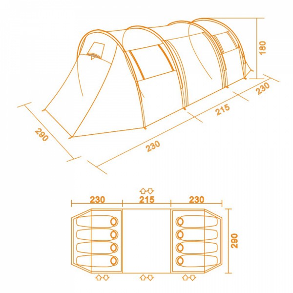 Вологостійкість намету: 3000 мм водяного стовпа. Усі шви проклеєні водонепроникною стрічкою;