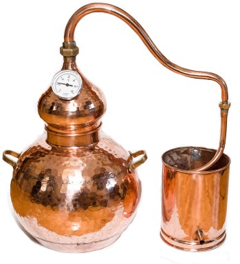 Класичний мідний аламбік ручної роботи повністю виконаний із міді. Аламбік пожвавить декор вашої квартири або заміського будинку. А головне ваші гості будуть приємно вражені смаком домашнього віскі, кальвадосу чи бренді, приготовленого вами за допомогою мідного апарату.