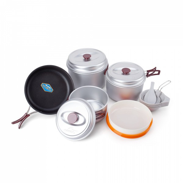 Туристичний набір посуду з анодованого алюмінію на 7-8 осіб