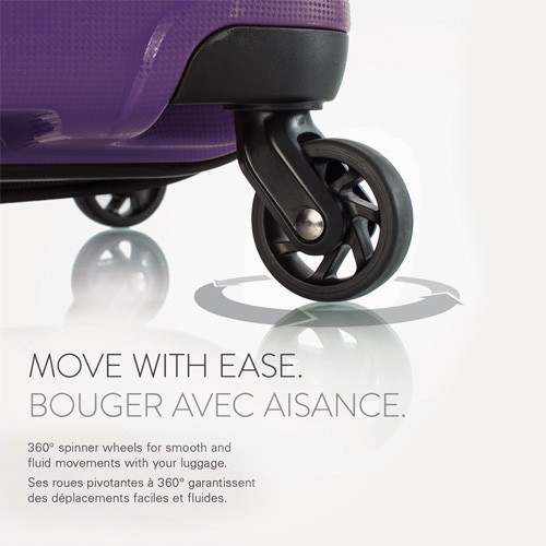 Валіза оснащена чотирма повноповоротними колесами Spinner з можливістю незалежного розвороту кожного колеса на 360°. Системою передбачено рівномірний перерозподіл навантаження на кожне колесо, що у свою чергу сприяє плавному коченню та маневреності валізи, докладаючи при цьому мінімум зусиль.