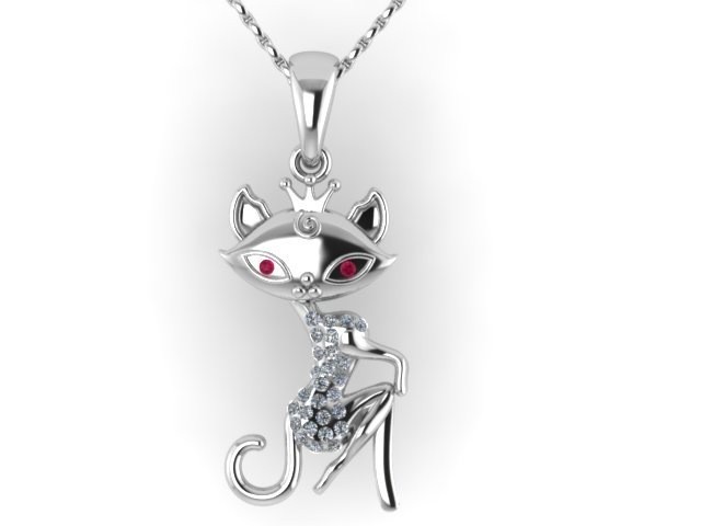 Кулон виконаний у вигляді кішки, яка показує, наскільки жінка ніжна, елегантна, кокетлива та прекрасна. Мініатюрна корона, ще раз підкреслює те, що будь-яка представниця гарної статі хоче бути принцесою, якій потрібно не багато уваги. Ручної роботи.