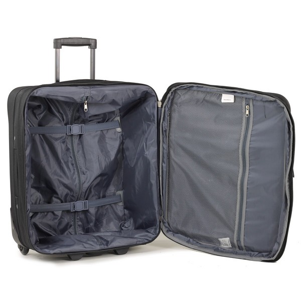 Валіза Members Spark Cabin (L) Black призначена як для перевезення найнеобхідніших і найцінніших речей в салоні літака, автобуса або іншого пасажирського транспорту, так і для транспортування в багажних відділеннях. Його зовнішні розміри відповідають вимогам, що висуваються такими компаніями, як EasyJet, British Airways, та деякими іншими до габаритів ручної поклажі при провезенні в економ-класі. Однак ця модель виконана з міцного матеріалу, має цілком надійну захищену конструкцію, і може без остраху бути відправлена в багажне відділення. Валіза має прогумовану, добре захищену пару роликових коліс. Висувна телескопічна ручка має два фіксовані положення. Додаткову зручність надають дві ручки для транспортування валізи в руках вертикально чи горизонтально. На фасадній частині розміщена велика кишеня, яка зручно розстібається. Внутрішній об'єм має еластичні ремені для фіксації речей та сітчасту кишеню на блискавці.