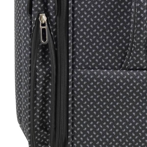 Для більшої місткості валіза Members Vogue (L) Black & White Mini Paisley має розширювальний клапан на блискавці, що дозволяє за необхідності збільшити корисний обсяг валізи на 10%. Фасад валізи має дві зовнішні кишені на блискавці. Всередині валіза має сітчасту кишеню на блискавці і має компресійні ремені для фіксації речей. Для зручності транспортування та навантаження валіза оснащена двома м'якими ручками. Чотири повноповоротні колеса та висувна телескопічна ручка з двома фіксованими положеннями забезпечують необхідну маневреність та зручність транспортування.