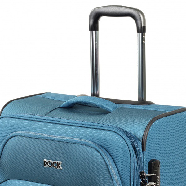 Чемодани Rock Aura II (L) Teal виготовлені з легшого, але при цьому міцного нейлону з внутрішнім поліуретановим покриттям, що надійно захищає від проникнення вологи всередину. Розширювальний клапан на блискавці дозволяє при необхідності збільшити обсяг валізи на 15% або зменшити, зробивши валізу більш компактною. Всередині валіза оснащена компресійними стяжками та сітчастою кишенею на блискавці. Дрібні речі та речі першої необхідності можна розмістити у фасадних зовнішніх кишенях. Чотири повноповоротні здвоєні поліуретанові колеса забезпечують плавний хід і просте управління чемоданом за допомогою телескопічної ручки, що фіксується у двох положеннях. Для захисту валізи від зовнішніх пошкоджень передбачено пластиковий захист дна, кутів та бічної поверхні. Додаткова зручність транспортування та навантаження забезпечують м'які ручки у бічному та верхньому положенні, а також пластикова вантажна ручка знизу.