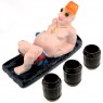 Ідея зробити штоф - графин у вигляді пляжника, що загоряє, взагалі-то - класна. Ось тільки місцеві народні умільці зробили все "тяп-ляп". Тому дядько вийшов із синюватою засмагою, а чарки – дещо криві… напевно теж накотили?