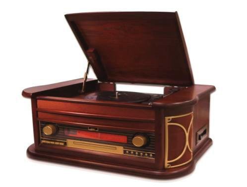 Такой приемник сочетает в себе функции современной трехскоростной вертушки для воспроизведения виниловых дисков, радио, кассетного магнитофона и CD проигрывателя.