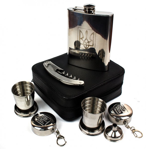 Набір подарунковий з флягою для чоловіків 5в1 барсетка Україна