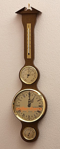 Настінний інтер'єрний барометр, гігрометр, термометр, годинник Moller 204903 є не тільки високоточним приладом для вимірювання атмосферного тиску, але стане вишуканою прикрасою будь-якого інтер'єру. Усі деталі та елементи приладів виготовляються та збираються у Німеччині. Точність та гарантована довговічність – ось основний девіз компанії Moller-Therm. На підтвердження цього на свою продукцію виробник надає два роки гарантії. Усі барометри адаптовані для нашого ринку та мають вимірювальну шкалу не тільки в hPa, але й у міліметрах ртутного стовпа. Деякі моделі крім барометра мають додатково гігрометр, термометр, годинник.