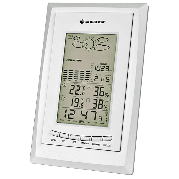 Метеостанції Bresser TemeoTrend AI фіксує зміни барометричного тиску та на підставі цих змін виводить на дисплей короткостроковий прогноз погоди на найближчий час. Також вимірює величину атмосферного тиску, температуру та вологість у приміщенні та на вулиці.