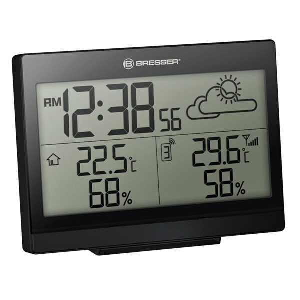 Метеостанція Bresser TemeoTrend LG відображає прогноз на найближчий годинник. Ця погодна станція дає уявлення про такі важливі кліматичні параметри, як температура та вологість. Важливо, що всі ці дані метеостанція фіксує як у приміщенні, так і на вулиці, а можливість підключення трьох датчиків дозволяє охопити досить широку площу для вимірювання даних.