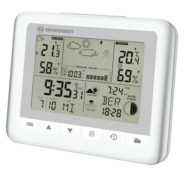 Метеостанції Bresser TemeoTrend WFW white фіксує зміни барометричного тиску та на підставі цих змін виводить на дисплей короткостроковий прогноз погоди на найближчий час. Також вимірює величину атмосферного тиску, температуру та вологість у приміщенні та на вулиці.