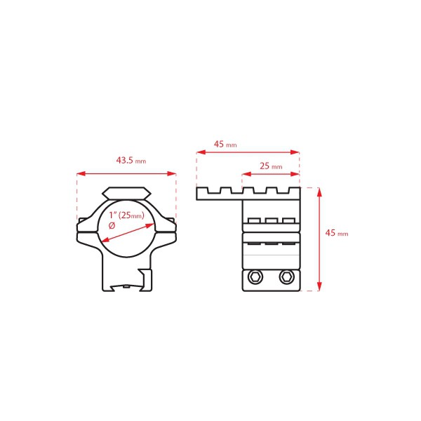 Характеристики товару Кільця Hawke Tactical 1"/9-11mm (Picatinny Rail Top)/Med