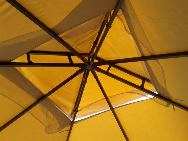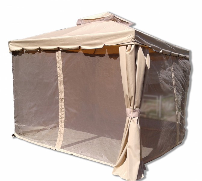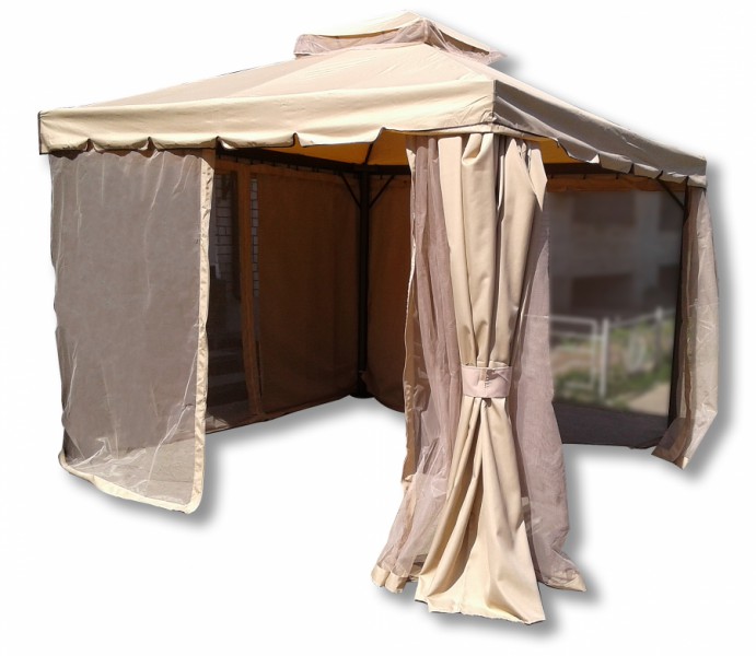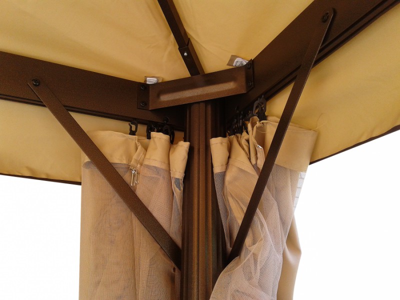 Неповторний дизайн чудово впишеться в інтер'єр Вашого саду. Повноцінна альтанка з москітною сіткою з усіх боків, захистить від комарів та комах. Також при необхідності можна закрити будь-який бік щільною тканиною, захистить від вітру, потрапляння сонячних променів і додасть романтичну обстановку і затишок.