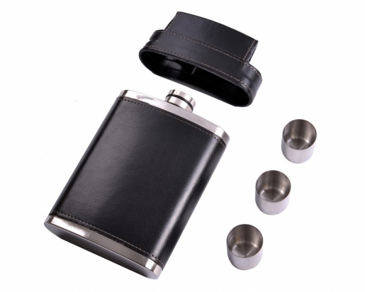 Фляга з нержавіючої сталі обтягнута шкірою, яку приємно подарувати мисливцям або рибалкам на тематичні свята.