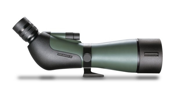 Окулярний вузол Hawke Endurance ED розташований під кутом 45º по відношенню до поздовжньої осі труби - це дуже зручно для спостережень у положенні лежачи та з настільних штативів. Корпус повертається навколо осі, встановлюється під будь-яким кутом і фіксується в кільці з роз'ємом для кріплення штатива. З цікавих рішень можна відзначити чіткі фіксовані положення труби при повороті навколо осі в точках 0, 45 і 90. Висувна сонцезахисна бленда захищає об'єктив і від сонячних відблисків, і від опадів. На захисній бленді знаходиться спеціальна цілік для попереднього наведення труби на ціль. Монтажна база труби адаптована під стандартне кріплення фотоштативу, тому пошук необхідної опори для спостереження - не проблема.