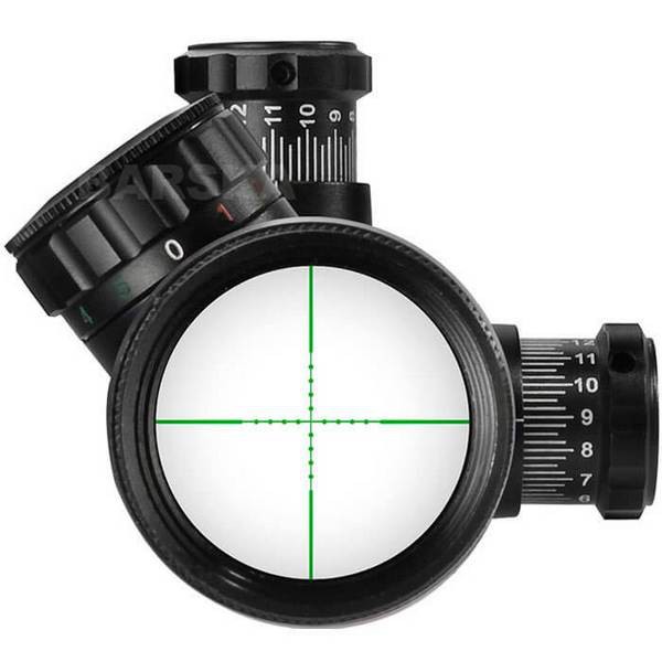 Завдяки прицільній сітці Mil Dot відстань до мети можна визначити максимально точно, при цьому правильно прийняти поправку на вітер і врахувати траєкторію падіння кулі. Цей Mil Dot вірний у 10-кратному збільшенні.