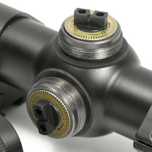 Барабани введення поправок по вертикалі і горизонталі мають ціну кліка 0.25 МОА і закриті алюмінієвими ковпаками, що загвинчуються.