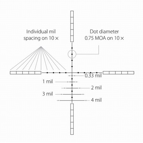 Значною перевагою є те, що сітка вигравірувана на скляній пластині. Це забезпечує практично 100% захист сітки від руйнівного впливу різновекторної віддачі пружинно-поршневої пневматики. Крім того, всі елементи сітки досить тонкі та не перекривають ціль.