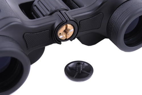 Серед деталей корпусу бінокля варто відзначити вуха для фіксації шийного ремінця і металеве гніздо кріплення штативного L-адаптера, закрите зручною декоративною кришечкою, що загвинчується.